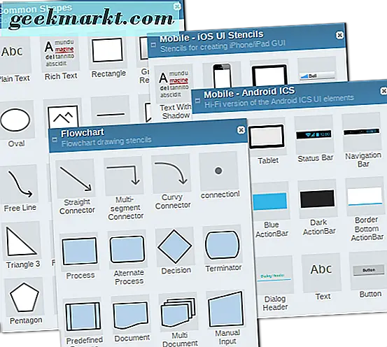Aber das ist noch nicht alles: Mit Pencil Project können Sie auch die Benutzeroberfläche für Ihre Produkte und Anwendungen mit einer vollständigen Bibliothek mit iOS- und Android-Schablonen, -Formen und Statusleisten abbilden, sodass Sie Ihre Benutzeroberfläche in einer Umgebung gestalten können, die sich nicht anfühlt -Einlieferung. Auch wenn diese Funktion nicht für jedermann verfügbar sein wird, ist sie ein wirklich interessantes Konzept und eine Ergänzung zu den typischen Diagramm-Werkzeugoptionen, die wir schon so oft gesehen haben. Pencil Project sieht immer noch regelmäßige Updates, die neuesten sind in diesem Sommer aufgetreten, und es gibt eine riesige Menge an Unterstützung und Dokumentation hinter dem Tool. Jeder, der eine herunterladbare Anwendung für Ihre Diagramme und Ihr Design sucht, möchte dies überprüfen.