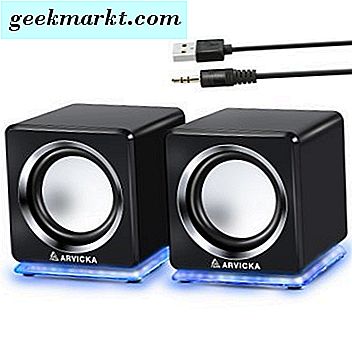 Wie man es von einem Lautsprecherpaar unter 20 Dollar erwarten würde, bieten diese kleinen Jungs das Minimum an Funktionalität. Es gibt einfach einen Lautstärkeregler mit einer Ein / Standby-Taste und ein USB-Kabel, das neben einem 3, 5-mm-Kabel für die Stromversorgung an den Computer angeschlossen wird.