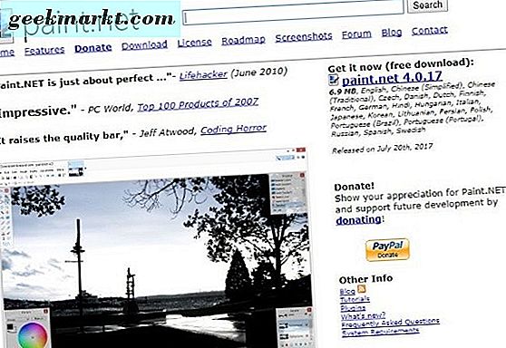 Paint.NET ist leicht zu diskontieren, sobald Sie auf der Website landen, aber Ausdauer wird Sie mit einem der am einfachsten zu bedienenden, schnellsten Bildbearbeitungsprogrammen belohnen. Es ist völlig kostenlos und wird ständig weiterentwickelt und ist ein sehr glaubwürdiger Konkurrent von Photoshop für leichtere Arbeit.