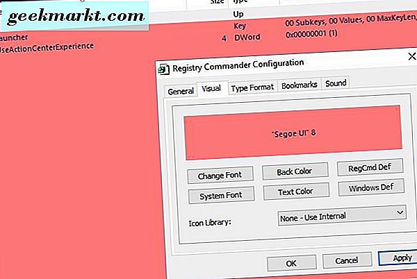 Visuell ist dieser Registrierungs-Editor etwas von der Windows 10-Version entfernt und enthält viele Anpassungsoptionen. Sie können auf Optionen > Konfiguration klicken, um das direkt darunter angezeigte Fenster zu öffnen. Klicken Sie dann auf die Registerkarte Visual, um die Hintergrundfarbe und die Schriftarten im Fenster weiter anzupassen. Wenn Sie Schriftart ändern auswählen, können Sie eine Reihe von alternativen Schriftarten und Textformatierungsoptionen für das Aezay Registry Commander-Fenster auswählen. Klicken Sie auf Übernehmen und OK, um die ausgewählten Einstellungen zu speichern.