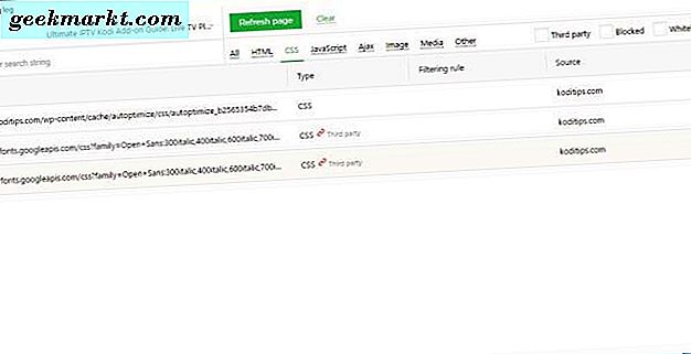 Öffnen Sie diese Seite, um AdGuard AdBlock zu Ihrem Browser hinzuzufügen. Die Benutzeroberfläche der AdGuard-Schaltfläche enthält die standardmäßigen Anzeigenblockoptionen, sodass Sie sie für eine Seite aktivieren bzw. deaktivieren können. Wählen Sie auf einer Seite Anzeigen aus, um sie zu blockieren oder anzuhalten. AdGuard enthält jedoch auch eine Option zum Öffnen des Filterprotokolls . Dies ist ein Novum, das das Filtering-Protokoll im folgenden Screenshot öffnet, in dem die von der Erweiterung blockierten Anzeigen angezeigt werden.