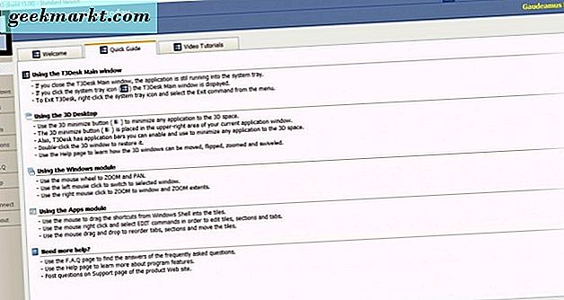 T3Desk 2015 ist eine Software, die 3D zu Desktop-Fenstern hinzufügt. Mit T3Desk können Sie dann die Fenster auf Ihrem Desktop spiegeln und drehen. Das Paket hat zwei Versionen, und Sie können die Standard-Freeware-Version zu Win 10, 8, 7 und Vista von der Software-Website hinzufügen. Klicken Sie dort auf die Schaltfläche Download / Install, um das Setup zu speichern und das Programm zu Windows hinzuzufügen. Dann öffne das T3Desk 2015 Fenster unten.