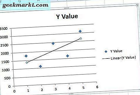 Die Liner-Regressions-Trendlinie in der obigen Grafik hebt hervor, dass es eine allgemeine Aufwärtsbeziehung zwischen den x- und y-Variablen gibt, trotz einiger Tropfen auf dem Chart. Beachten Sie, dass die Trendlinie der linearen Regression keine der Datenpunkte im Diagramm überlagert. Sie ist also nicht mit Ihrem durchschnittlichen Liniendiagramm identisch, das jeden Punkt verbindet.
