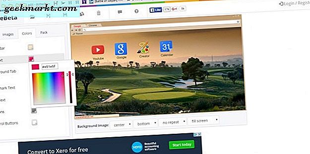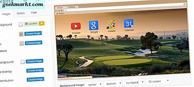 Es gibt auch einige andere Websites, auf denen Sie ein benutzerdefiniertes Chrome-Design erstellen können. Unter ihnen ist ChromeThemeMaker.com. Diese Website enthält auch eine Reihe von Anpassungsoptionen für die Farben und Bilder des Themas. Die Google Chromizer-Site ist ein grundlegender Theme-Editor, mit dem Sie ein Theme mit Bild einrichten können. Abgesehen davon hat es jedoch keine anderen Möglichkeiten.