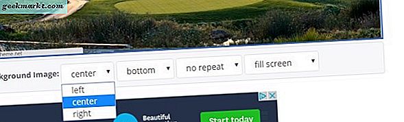 Unterhalb der Vorschau des Themas gibt es einige Hintergrundbildoptionen. Sie können die Optionen für die linke, rechte und mittlere Ausrichtung aus einer der Dropdown-Listen auswählen. Wählen Sie die Option " Bildschirmfüllend ", um das gesamte Bild im Hintergrund anzuzeigen .