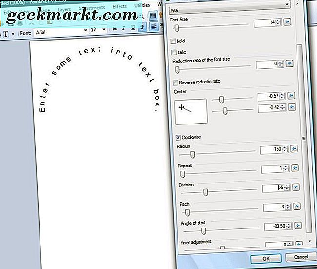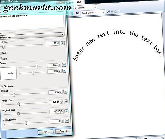 Biegetext wendet ansonsten einen Kurveneffekt an. Anstatt eine Textzeile auf einem Bild zu haben, können Sie sie als halbkreisförmigen Bogen, Welle, Spirale oder Kreis hinzufügen. Es gibt zahlreiche Bildbearbeitungsprogramme, mit denen Sie Text beugen können. Paint.NET ist ein gutes Freeware-Softwarepaket zum Bearbeiten von Text, das mit den mehr aktualisierten Windows-Plattformen kompatibel ist.