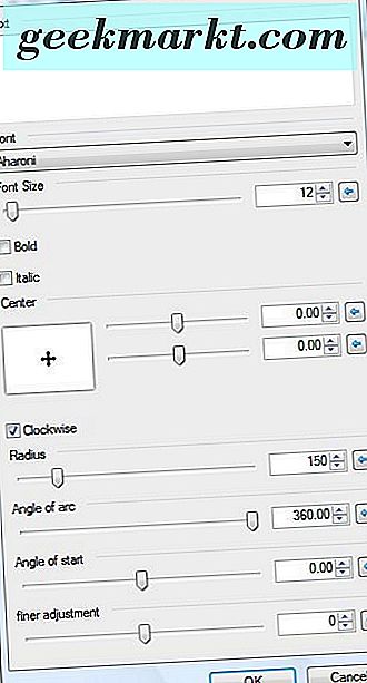 Das Kontrollkästchen Im Uhrzeigersinn kann die Richtung des Textes vollständig ändern. Wenn Sie diese Option nicht auswählen, wird der Text im Gegenuhrzeigersinn angezeigt. Das kann Ihnen mehr von einem Ankerbogen geben als unten.