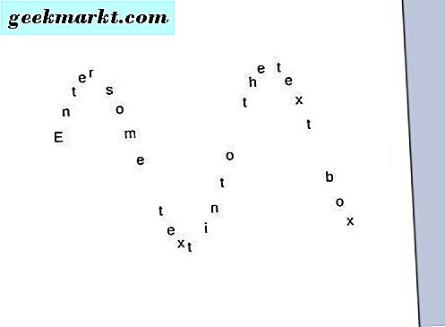 Sie können mit diesem Werkzeug eine halbrunde Bogenbiegung anwenden, wenn Sie nur eine kleine Menge Text eingeben. Reduzieren Sie den Textabstand, indem Sie die Division- Leiste weiter nach rechts auf einen Wert von 56 ziehen. Wenn Sie dann den Pitch- Balken weiter nach links auf einen Wert von vier ziehen und den Winkel der Startleiste auf -89, 50 einstellen, können Sie den Text nach biegen mehr von einem Bogen wie unten. Dies ist vergleichbar mit dem, was Sie mit dem Kreistext- Werkzeug erhalten können.