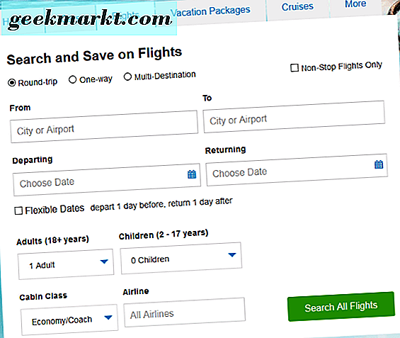 Priceline ist immer noch eine praktikable Website für günstige Flüge, Hotels und vieles mehr, erlaubt Ihnen aber nicht mehr, auf Flüge im herkömmlichen Sinne zu bieten. Es ist eine Schande, wenn man bedenkt, dass die Firma nur dazu gegründet wurde, ihren eigenen Preis zu nennen. Dennoch, wenn Sie nach Rabatten suchen, ist dies immer noch eine Website zu versuchen.