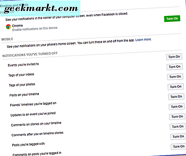 - Benachrichtigungen, die Sie deaktiviert haben - Die hier aufgelisteten Benachrichtigungstypen sind Benachrichtigungen, die Sie derzeit deaktiviert haben, aber möglicherweise aktiviert sind. Wenn Sie einen einschalten, verschwindet er von der Liste. Wie schaltest du es wieder aus? Gute Frage.