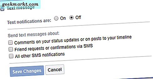 Dies ist die möglicherweise nervigste aller neuen Facebook-Benachrichtigungen. Wenn Sie keine unbegrenzten SMS haben, können diese Nachrichten Sie Geld kosten. Das letzte, was Sie wollen, ist von Facebook bedrängt zu werden und eine riesige Rechnung zu haben, mit zu kämpfen. Zum Glück ist es auch einfach abzuschalten.