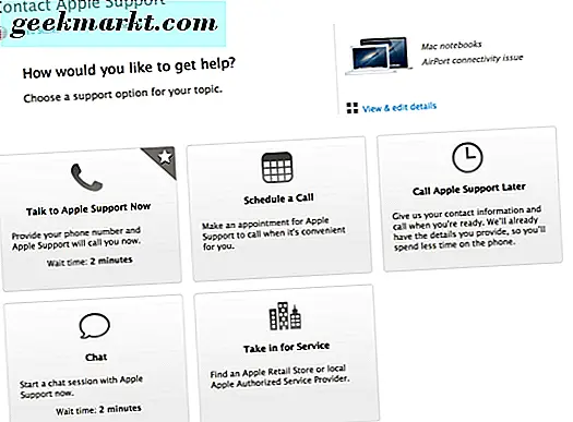 Wenn aus irgendeinem Grund das Anrufen nicht funktioniert oder Sie nicht mit jemandem telefonieren möchten, gibt es eine Vielzahl anderer Möglichkeiten, Apple zu kontaktieren. Sie können sie per E-Mail senden, mit ihnen live chatten und sie sogar persönlich treffen, wenn Ihre Stadt einen Apple Store oder einen autorisierten Serviceanbieter hat. Dies sind alle geeigneten Optionen und können Ihnen die Hilfe, die Sie benötigen, wenn es um Ihr Gerät geht.