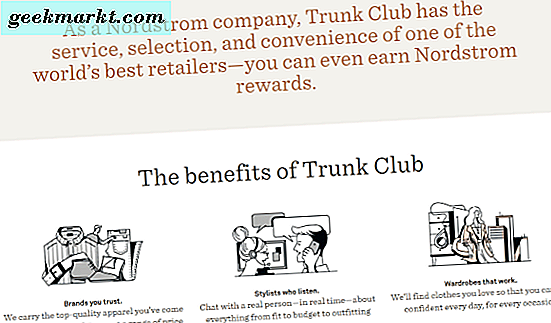 Trunk Club begann als Service für Männer, erweiterte sich aber auch auf Frauen. Wenn Sie wirklich nicht einkaufen gehen oder keine Freunde haben, denen Sie vertrauen, um Ihnen zu sagen, was gut aussieht und was nicht, könnte dies der Service für Sie sein. Die meisten Männer mögen es nicht, in irgendeiner Form einkaufen zu gehen, daher funktioniert das besonders gut für sie. Nicht alle Frauen genießen es, entweder einzukaufen oder Zeit zu haben, damit sie auch davon profitieren.