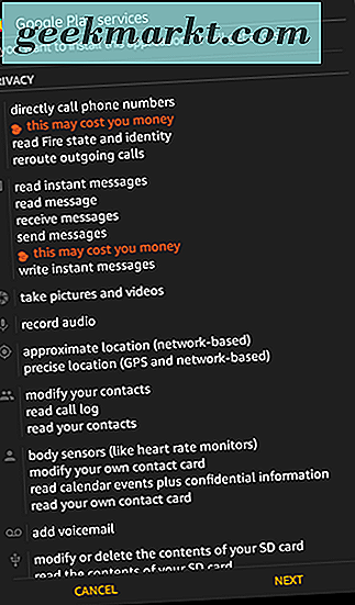 Gehen Sie am Ende dieser Liste nach oben und installieren Sie zunächst den Google Account Manager. Unglücklicherweise gibt es derzeit ein kleines Problem mit Fire OS 5.6.0.0, der aktuellsten Version des von Amazon entwickelten Betriebssystems. Entweder durch eine Optimierung von Amazon oder durch einen Fehler in der Software führt der Versuch, diese Apps zu installieren, zu einer ausgegrauten Installationsschaltfläche. Zum Glück für uns können Sie dieses Problem mit diesem schnellen Trick beheben: Sobald Sie sich auf dem Installationsbildschirm mit dem ausgegrauten Symbol befinden, schalten Sie einfach den Bildschirm Ihres Geräts aus und wieder ein und entsperren Ihr Gerät. Scrollen Sie erneut zum unteren Rand der App-Installationsseite und Sie werden sehen, dass die Schaltfläche "Installieren" erneut auf Ihrem Gerät funktioniert. Eine alternative Problemumgehung umfasst das einmalige Tippen auf das Multitasking / zuletzt verwendete Apps-Symbol und die erneute Auswahl der App-Installationsseite aus der Liste der zuletzt verwendeten Apps. Daraufhin sollte die Schaltfläche "Installieren" orange leuchten.
