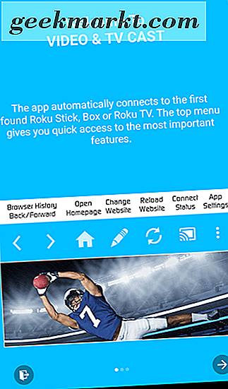 Im Gegensatz zu AllCast, das sich hauptsächlich auf das Streamen lokaler Medien konzentriert (obwohl AllCast Plex in seiner kostenpflichtigen Version unterstützt), konzentriert sich unsere zweite empfohlene App hauptsächlich auf das Streaming von Online-Medien über Websites und andere Online-Quellen. Diese App heißt Video und TV-Cast, und während es mehrere Versionen dieser App zum Download gibt, ist die, die wir betrachten werden, nicht überraschend, im Zusammenhang mit der Roku-Box unter Ihrem Fernseher sitzen. Mit dieser App können Sie Inhalte von Ihren bevorzugten Websites direkt aus dem mitgelieferten Browser mit der App auf Ihrem Tablet streamen. Verwenden Sie einfach die App, um zu der gewünschten Website zu navigieren, und wählen Sie dann das in die Anwendung integrierte Streaming-Symbol aus, um mit dem Übertragen des Videos auf Ihren Roku zu beginnen. Video und TV Cast verfügt über einen integrierten Werbeblocker, mit dem Sie die Anzahl der Anzeigen reduzieren können, die bei der Verwendung der App angezeigt werden. Ebenso können Sie Websites im Browser für Lesezeichen in der App speichern. Dadurch wird das erneute Laden von Websites zum Kinderspiel, wenn Sie nach neuen Inhalten suchen.