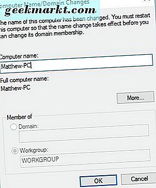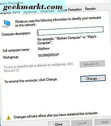 Klicken Sie auf die Registerkarte Computername in dem Fenster, wenn es nicht bereits ausgewählt ist. Drücken Sie die Schaltfläche Ändern, um das im folgenden Schnappschuss gezeigte Fenster zu öffnen. Dazu gehört der aktuelle Computername, den Sie jetzt aus dem Textfeld löschen können. Geben Sie einen alternativen Titel in das Textfeld ein und drücken Sie OK . Starten Sie Windows 10 neu, um die neue Einstellung zu übernehmen.