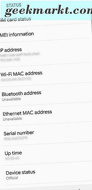 Zuerst müssen Sie Ihre MAC-Adresse überprüfen. Gehen Sie zu Einstellungen, dann zu Telefon und wählen Sie Status. Hier sehen Sie Ihre aktuelle MAC-Adresse, und wir empfehlen, dass Sie sie irgendwo aufschreiben, nur für den Fall.