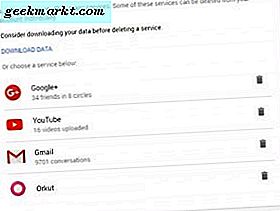 Hinweis : Bevor Sie Google Mail löschen, können Sie Ihre E-Mails herunterladen, indem Sie oben auf der Google-Services-Liste auf den Link "Daten herunterladen" klicken. Sie können wählen, ob Sie alle E-Mails herunterladen oder bestimmte Labels auswählen möchten. Die heruntergeladene Datei befindet sich im MBOX-Format und kann geöffnet werden, indem ein aktives Google Mail-Konto mit einem E-Mail-Client wie Thunderbird verbunden wird.