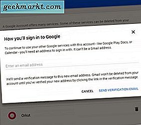Denken Sie daran, dass Sie nur Ihre Google Mail-Adresse und nicht Ihr Google-Konto löschen möchten. Wählen Sie daher "Produkte löschen". Klicken Sie im nächsten Fenster auf das Papierkorbsymbol neben Google Mail. Sie werden aufgefordert, eine andere E-Mail-Adresse als Google anzugeben, bevor Sie fortfahren können. Hier können Sie sich bei anderen Google-Diensten wie Google Play, Google Docs oder Google Kalender anmelden. Geben Sie die alternative E-Mail-Adresse ein und klicken Sie auf "Bestätigungs-E-Mail senden".