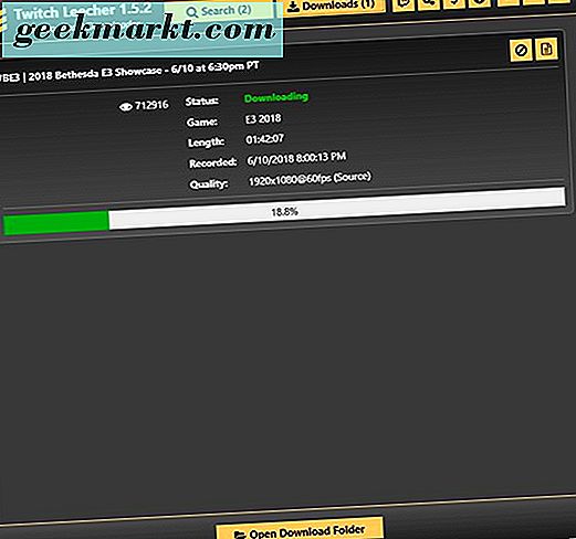 Wenn Sie Bethesda in das Suchfeld innerhalb der App eingeben und nach Videos der letzten 10 Tage suchen, wird der E3 2018-Stream ohne Probleme angezeigt. Mit dieser Seite in unseren Suchergebnissen war es einfach, sie auszuwählen und sie sofort unserer Download-Liste hinzuzufügen. Mit Twitch Leecher können Sie automatisch nach Videos, Hervorhebungen und Uploads suchen. So können Sie ganz einfach den Inhalt eines beliebten Streams analysieren, um genau das zu finden, wonach Sie suchen.