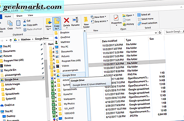Alternativ können Sie Google Drive-Ordner kopieren, indem Sie die Software "Backup and Sync" zu Windows hinzufügen. Backup und Synchronisierung fügt dem Datei-Explorer einen Google Drive-Ordner hinzu. Die Software synchronisiert dieses Verzeichnis, sodass Sie Ihre in GD gespeicherten Dokumente aus dem Datei-Explorer öffnen und Dokumente direkt im Cloud-Speicher speichern können. Da der Datei-Explorer die GD-Ordner enthält, können Sie sie auch mit diesem Dateimanager kopieren.