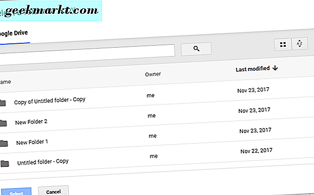 Drücken Sie die Schaltfläche Ordner auswählen, um das direkt darunter angezeigte Fenster zu öffnen. Wählen Sie einen zu kopierenden Ordner und drücken Sie die Auswahltaste . Geben Sie dann einen Titel für den duplizierten Ordner in das Textfeld ein. Klicken Sie auf die Schaltfläche Ordner kopieren, um den ausgewählten Ordner in Google Drive zu duplizieren.