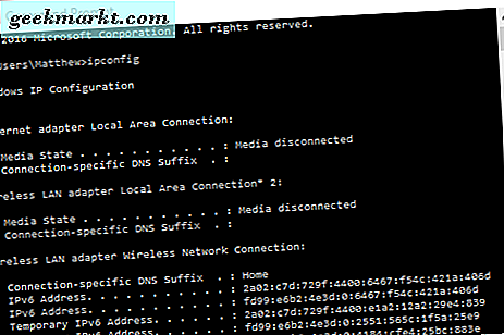 Um die lokale IP-Adresse zu finden, drücken Sie die Win-Taste + R und geben Sie 'cmd' ein, um die Eingabeaufforderung zu öffnen. Geben Sie dann "ipconfig" in die Eingabeaufforderung ein und drücken Sie die Eingabetaste. Die Eingabeaufforderung zeigt Ihnen die IP-Details wie folgt an. Ihre IP-Adresse ist dort als IPv4-Adresse aufgeführt.