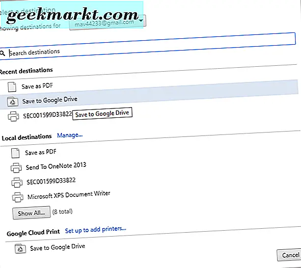- Die Schaltfläche Alle drucken öffnet das Fenster Drucken, das direkt darunter angezeigt wird. Klicken Sie auf die Schaltfläche Ändern, um das Fenster Ziel auswählen zu öffnen.