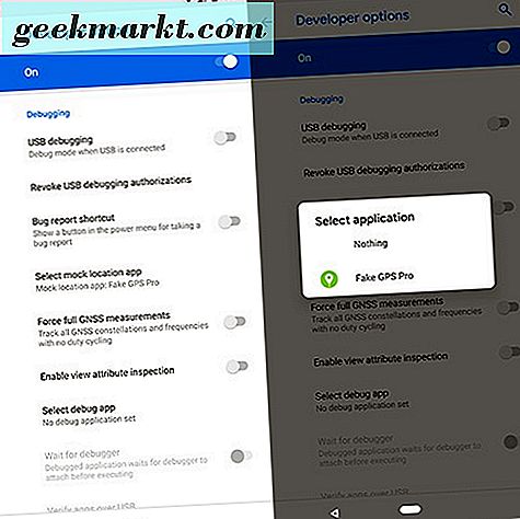 Sie werden jetzt eine neue Option in Ihrem Einstellungsmenü bemerken. Für einige ist die Option im Menü der Standardeinstellungen ausgeblendet und kann jederzeit angeklickt werden. Für andere, finden Sie die Option in Ihrem eigenen "About Phone" oder "System" -Menü, wo wir es auf unserem Pixel 2 XL gefunden haben. Dieses Menü bietet eine Vielzahl von Optionen, die Sie zuvor noch nicht auf Ihrem Telefon hatten. Sie sind für Entwickler gedacht, die an der Erstellung von Apps für den Play Store arbeiten und die Sie zu einem späteren Zeitpunkt herunterladen können. Dort finden wir die goldene Einstellungsoption, die wir zum Ändern und Bearbeiten Ihres GPS-Standortes benötigen. Im Menü Debuggen finden Sie eine Option für die Option "Standort-App auswählen". Bei älteren Versionen von Android ist diese Option ein Schalter mit der Bezeichnung "Zulässige Standorte zulassen". Mit der ersten Option können Sie eine Standort-App auswählen GPS; Erstere ermöglicht uns die Möglichkeit, diese Apps überhaupt zu verwenden. Unabhängig davon, welche Version auf Ihrem Gerät angezeigt wird, müssen Sie sie in diesem Menü auswählen.
