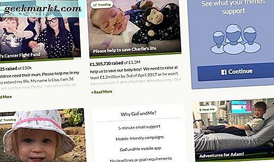 GoFundMe wurde 2010 ins Leben gerufen und hat eine große Anhängerschaft aufgebaut. Es bietet eine einfache Plattform, auf der jeder eine Kampagne starten kann und Menschen können schnell und einfach eine Spende geben. Die Website nimmt eine Kürzung vor, um die laufenden Kosten zu decken, aber der Rest geht direkt in diese Richtung.