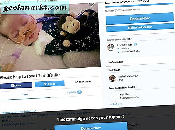 GoFundMe ist Crowdsourcing für Einzelpersonen. Wie Kickstarter bezieht GoFundMe kleine Spenden von vielen Einzelpersonen, um größere Summen für diejenigen bereitzustellen, die es brauchen. Ursachen können von medizinischen bis zu Notfällen, Denkmälern, Tieren und allen möglichen Ursachen sein. Manche sind verzweifelt, andere sind dumm. Es ist deine Aufgabe, einen von dem anderen zu sortieren.