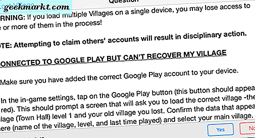 Supercell empfiehlt, dass Benutzer nur ein Dorf mit ihrem Konto verknüpft haben. Wenn Sie versuchen, mehr Dörfer zu bekommen, riskieren Sie, einen oder mehrere von ihnen zu verlieren. Sie warnen auch Benutzer, die die E-Mail-Methode verwenden möchten, um Zugang zu Konten und Dörfern anderer Personen zu erhalten. Supercell verspricht, dass dies mit schweren Disziplinarmaßnahmen geahndet wird.