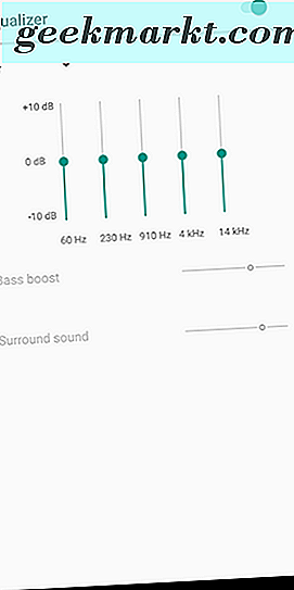 Der von Google entwickelte Equalizer ist dagegen viel weniger komplex. Vorbei sind die Skalen für Instrumenten- und Stimmabstimmung, und an ihrer Stelle befindet sich ein einfacher Fünf-Slider-EQ, der so gebaut ist, dass Frequenzen von einer niedrigen bis zu einer hohen Lautstärke eingestellt werden können. Dies ist nicht annähernd so leistungsstark wie das, was Sie auf einem Computer oder in einigen Musikanwendungen finden, einschließlich Poweramp, aber als eine kostenlose Option ist es überraschend nützlich. Wie bei allen EQs wirken sich niedrigere Frequenzen auf der linken Seite des Diagramms auf Ihren Bass aus, während hohe Frequenzen auf der rechten Seite Ihre Höhen beeinflussen und Ihr Erlebnis beim Anpassen der Schieberegler minimieren oder maximieren. Wie der Equalizer von Samsung können Sie mit Google's automatisch eine voreingestellte EQ-Einstellung für Ihr Musikgenre auswählen. Es gibt eine große Auswahl an Optionen, von Klassik bis Dance, Rock bis Pop und Jazz bis Hip-Hop. Diese Optionen stellen automatisch jede der fünf Frequenzen auf eine Standardeinstellung ein, mit der Sie den besten Klang für Ihre Musik erhalten. Zumindest auf unserem Testgerät (einem Pixel 2 XL) funktioniert der EQ auf den Telefonlautsprechern, aber die Optionen für Bass Boost und Surround Sound werden erst eingeschaltet, wenn ein Paar Kopfhörer oder Lautsprecher angeschlossen oder über Bluetooth synchronisiert sind.