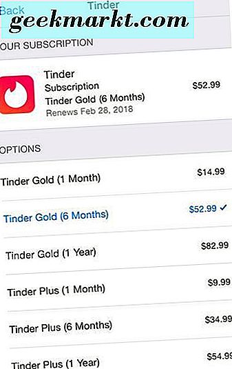 Tinder Gold ist im Wesentlichen ein neues Feature und einige existierende wurden verstärkt und in etwas verpackt, das als exklusiv oder Elite gemalt wird. Wenn Sie sich für den Marketing-Klappentext entscheiden, treten Sie einem exklusiven Club bei, der einen Fuß auf die App setzt. So exklusiv, dass jeder beitreten kann, wenn er die Kosten rechtfertigen kann.