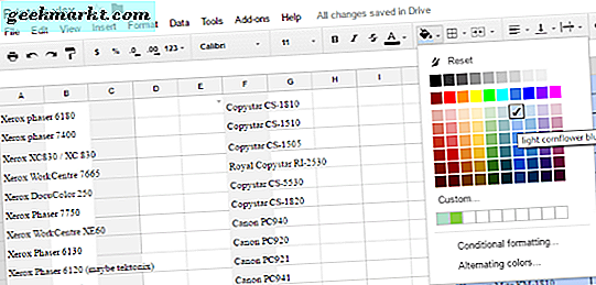 Ändern Sie die Zellenfarbe in Google Tabellen