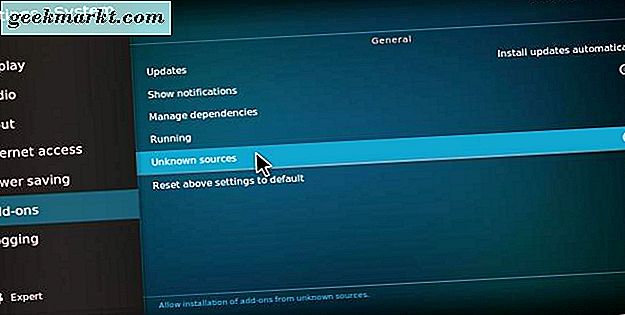 Zunächst müssen Sie Add-ons für unbekannte Quellen in Kodi 17.1 konfigurieren. Klicken Sie auf das Zahnradsymbol oben in der Kodi-Seitenleiste und wählen Sie Systemeinstellungen, um weitere Optionen zu öffnen. Dann können Sie Add-ons in der linken Seitenleiste auswählen, die eine Einstellung für unbekannte Quellen enthält . Klicken Sie auf Unbekannte Quellen und drücken Sie die Yes- Taste, um die Auswahl zu bestätigen.
