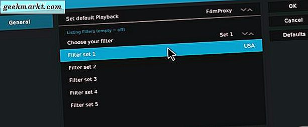 Die Ultimate IPTV-Einstellungen beinhalten auch Filter zum Filtern von Kanälen mit. Sie können beispielsweise einen Filter einrichten, um spezifisch britische oder US-amerikanische Channel-Streams zurückzuliefern. Um einen US- oder UK-Filter hinzuzufügen, klicken Sie auf Filtersatz 1 und geben Sie "UK" oder "USA" ein. Klicken Sie auf Filter auswählen und wählen Sie dort 1 aus. Drücken Sie OK, um die neuen Einstellungen zu bestätigen. Wählen Sie dann eine Kanalkategorie, um die Liste der Kanäle zu öffnen, wie im folgenden Schnappschuss gezeigt. Da ein USA-Filter ausgewählt wurde, enthält diese Liste nur amerikanische Kanäle.