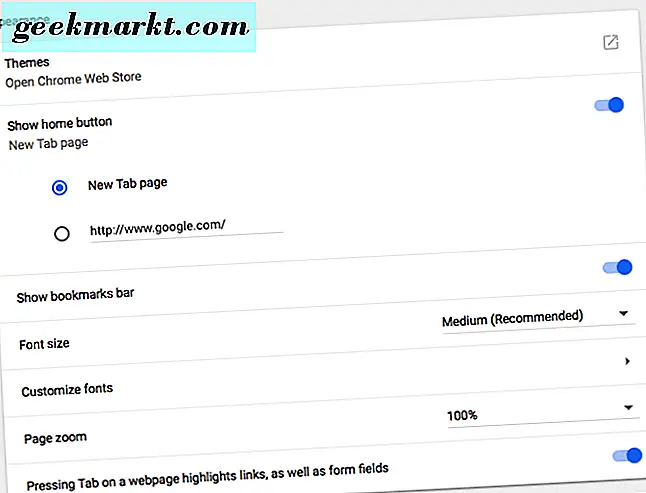 Im Folgenden sehen Sie das Feld "Darstellung", in dem Sie alle erforderlichen Änderungen an der Einrichtung Ihres Google Chrome-Browsers vornehmen müssen.