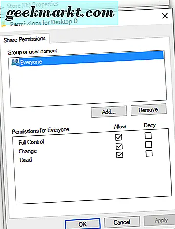 Dies gewährt allen Benutzern, die sich mit ihm verbinden, volle Rechte auf Dateien und Ordner innerhalb des freigegebenen Laufwerks. Sie können dies auf bestimmte Benutzer beschränken, aber das ist für dieses Handbuch etwas zu wünschen übrig. Stellen Sie nur sicher, dass jeder, der Zugriff auf Ihr Netzlaufwerk hat, weiß, welche Dateien Sie berühren und welche Sie in Ruhe lassen können!