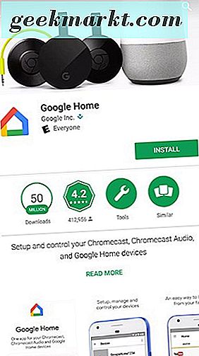 Ende 2016 aktualisierte Google seine vorherige ChromeCast-App mit dem Titel "Google Cast", um in "Google Home" umbenannt zu werden, und ergänzte die Unterstützung für Googles neuen intelligenten Home-Lautsprecher. Wenn Sie zuvor die Google Cast-App auf Ihrem Gerät installiert hatten, wurde die App so aktualisiert, dass sie jetzt "Google Home" lautet. Wenn Sie mit der Cast-Produktfamilie noch nicht vertraut sind, sollten Sie sich mit der Google Apps App beschäftigen Spielen Sie Store und laden Sie es für sich selbst herunter. Es ist eine kostenlose Anwendung und für jedes Android-Gerät mit Android 4.0.3 oder höher verfügbar.