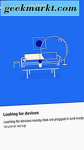 Sobald Sie die Home-App heruntergeladen haben, wird mit der Suche nach Ihrem Chromecast oder einem anderen Gerät in der Nähe fortgefahren. Vergewissern Sie sich, dass Ihr Chromecast an Ihr Fernsehgerät und an dasselbe WLAN-Netzwerk wie Ihr Telefon angeschlossen ist, und Sie können mit der Einrichtung fortfahren. Wenn Sie Chromecast noch nicht haben, können Sie die Einrichtung überspringen und mit der App selbst fortfahren.