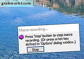 Jetzt ist es an der Zeit, ein eigenes Makro mit ClickyMouse aufzunehmen! Zum Beispiel öffnet das Makro sowohl Notepad als auch die Windows 10 Calculator App. Klicken Sie im ClickyMouse-Fenster auf die Schaltfläche " Neues Makro aufnehmen" und wählen Sie " Jetzt aufnehmen" . Das Makro beginnt mit der Aufnahme, und Sie sollten das kleine Fenster unten rechts auf dem Desktop finden, um das zu markieren.