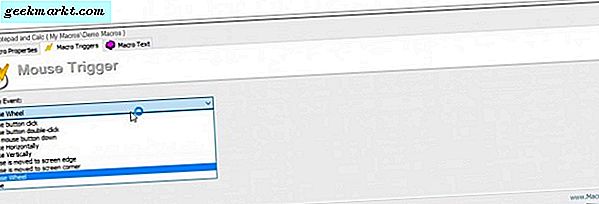 Wählen Sie als nächstes die Registerkarte Makroeigenschaften und geben Sie einen Titel für Ihr neues Makro ein. Klicken Sie auf die Registerkarte Makrotrigger und wählen Sie eine Triggeroption aus dem Dropdown-Menü Mausereignis. Zum Beispiel könnten Sie Mausklick oder Mausrad auswählen. Dann können Sie einen bestimmten Bereich für diesen Auslöser auswählen, z. B. die Titelleiste oder die Taskleiste.