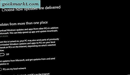 - Deaktivieren Sie "Updates von mehr als einem Ort". Dies verwendet eine BitTorrent-ähnliche Verteilungsanordnung, um Windows Updates zwischen vernetzten Computern oder anderen Benutzern im Internet freizugeben. Das Protokoll kann ressourcenintensiv sein und dazu führen, dass networks überlastet wird.