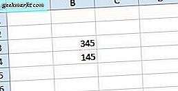 Die meisten Excel-Benutzer müssen jedoch Zahlen subtrahieren, die in Tabellenkalkulationsspalten und -zeilen eingegeben wurden. Um Zellenwerte zu subtrahieren, müssen Sie stattdessen ihre Zeilen- und Spaltenreferenzen in die Formel einschließen. Geben Sie beispielsweise die Werte '345' und '145' in den Zellen B3 und B4 in einer leeren Excel-Tabelle ein, wie im folgenden Schnappschuss.