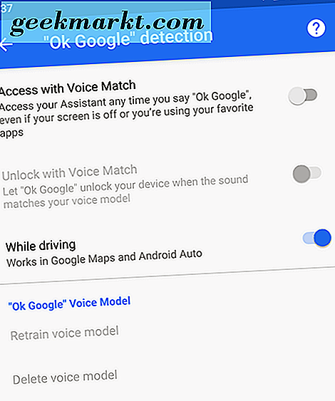 - Voice Match: Voice Match unterscheidet sich ein wenig von den anderen Optionen auf dieser Liste, da Google Advertising weitgehend dazu verwendet wird, Google Assistant zu aktivieren, anstatt Ihr Gerät zu entsperren. Hier ist der Deal: Wenn Sie Voice Match aktivieren, können Sie jedes Mal auf Google Assistant zugreifen, wenn Sie "OK Google" sagen, auch wenn der Bildschirm ausgeschaltet ist. Sobald Sie diese Option aktiviert haben, haben Sie eine zweite Auswahl: "Entsperren mit Voice Match", mit der Sie Ihr Telefon automatisch entsperren können, wenn der Ton Ihrer Stimme "OK Google" mit dem gespeicherten Sprachmodell auf Ihrem Gerät übereinstimmt.