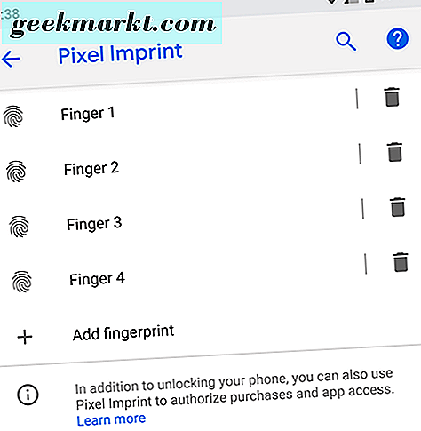 Fast jedes Android-Gerät im Jahr 2018 verfügt über einen Fingerabdrucksensor auf dem Gerät, sodass Sie problemlos auf Ihre Inhalte zugreifen können, ohne jedes Mal, wenn Sie Ihr Telefon verwenden, den Zugangscode einzugeben. Fingerabdrücke sind keine perfekte Entriegelungsmethode, aber sie sind schnell, sicher und können auf den meisten Telefonen mit bis zu vier Fingerabdrücken ausgestattet werden. Wenn Sie den Fingerabdrucksensor nicht auf Ihrem Gerät verwenden, sollten Sie ihn aktivieren, wenn Sie nur eine Sicherungsoption erstellen möchten. Selbst wenn Sie Ihr Telefon entsperren möchten, indem Sie eine Entsperrmethode wie PIN, Muster oder Kennwort verwenden, sind Fingerabdrücke perfekt, wenn Sie jemals Gefahr laufen, das Gerät versehentlich zu sperren, ohne das richtige Kennwort zu kennen.