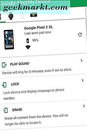 Wie bereits erwähnt, verfügt Google über ein ähnliches Dienstprogramm für alle Android-Telefone mit der Bezeichnung "Find My Device", das nur die Option bietet, Ihr Gerät zu sperren und nicht zu entsperren. Wenn Sie Ihren Passcode vergessen haben, wird das Gerät nach GPS suchen, den Bildschirm erneut sperren und Daten löschen. Es wird nicht möglich sein, den Bildschirm aus der Cloud zu entsperren.