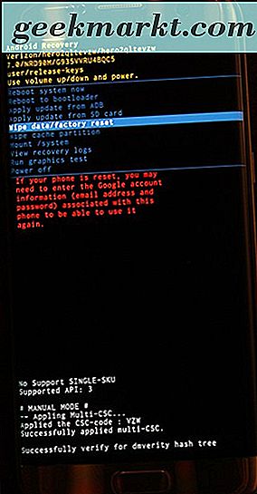 Sobald Sie in den Wiederherstellungsmodus gestartet haben, scrollen Sie mit den Lauter- und Leiser-Tasten Ihres Geräts durch die Liste, bis Sie "Daten löschen / Zurücksetzen auf Werkseinstellungen" erreichen. Wählen Sie diese Option mit dem Ein- / Ausschalter und bestätigen Sie Ihre Auswahl Anzeige. Ihr Telefon wird zurückgesetzt. Stellen Sie sicher, dass das Telefon ausreichend aufgeladen ist, um sicherzustellen, dass es mindestens 30 Minuten lang ohne zu sterben hält. Sobald das Telefon wieder auf dem Menübildschirm gestartet wurde, können Sie Ihr Gerät einrichten, indem Sie sich erneut bei dem Google-Konto anmelden, das Sie für Ihr Telefon verwenden. Es ist äußerst wichtig, dass Sie dasselbe Google-Konto verwenden, das Sie vor dem Zurücksetzen auf Ihrem Telefon verwendet haben. Android verfügt über ein integriertes Sicherheitsprotokoll, das als "Zurücksetzungsschutz für die Werkseinstellungen" bezeichnet wird. Für ein kürzlich zurückgesetztes Telefon muss dasselbe Google-Konto wie zuvor auf dem Gerät verwendet werden, um zu verhindern, dass ein Dieb das gestohlene Telefon sofort verwendet. Wenn Sie das Passwort für Ihr Google-Konto nicht haben, können Sie es zurücksetzen, aber das bedeutet, dass Sie sich nach dem Zurücksetzen 24 Stunden lang nicht bei Ihrem Telefon anmelden können.