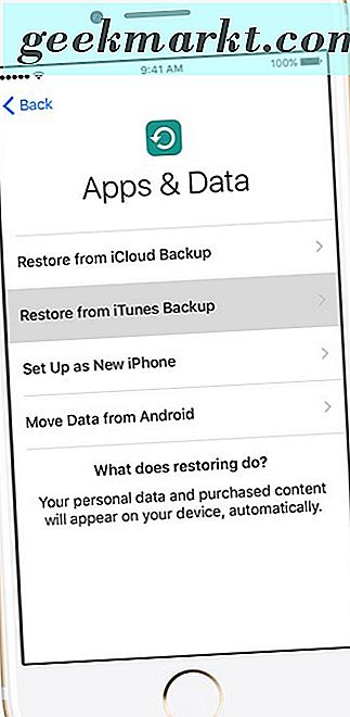Schritt 2: Drücken Sie auf dem Bildschirm "Hello" die Home-Taste und fahren Sie fort, bis Sie zum Bildschirm "Apps and Data" gelangen.